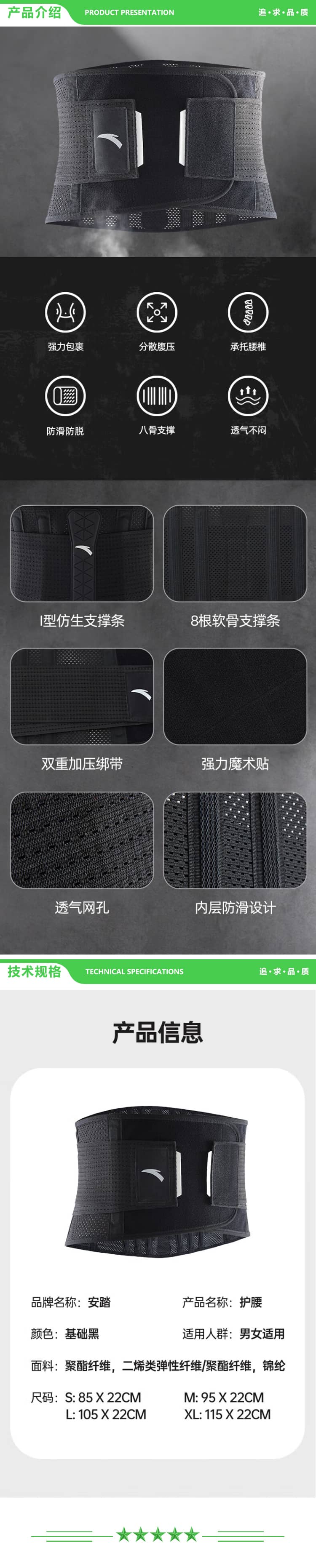 安踏 ANTA 1824572544-1 腰带夏季健身运动束腰跑步深蹲腰托男女 护腰带L码 2.jpg