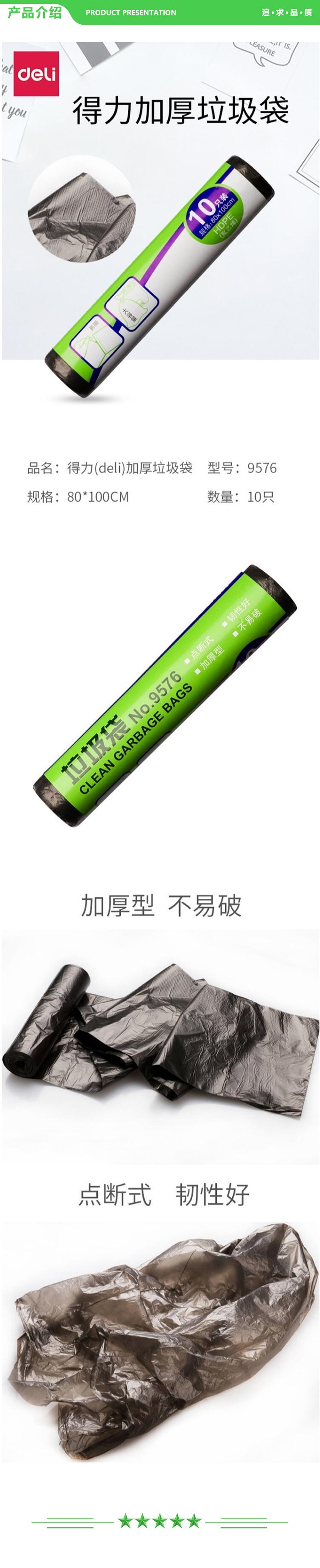 得力 9576 80X100cm 10只 单卷装垃圾袋 塑料袋 厨房卫生间 生活大容量垃圾袋 加厚耐用 超大号 2.jpg
