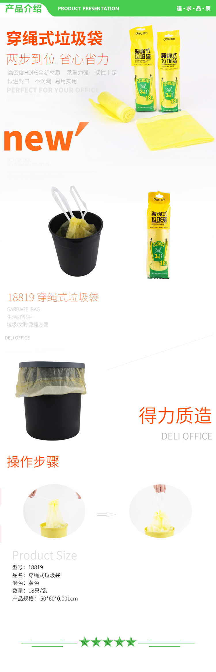 得力 deli 18819 50X60cm 18只 穿绳式黄色垃圾袋 塑料袋 大容量垃圾袋 加厚耐用 2.jpg