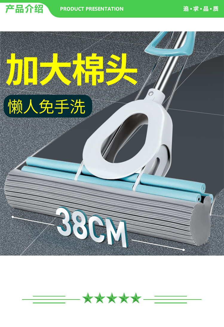 美丽雅 MARYYA HC065765 胶棉拖把 38cm 大拖头家用免手洗懒人地拖对折挤水墩布海绵拖把 共3个拖头 2.jpg
