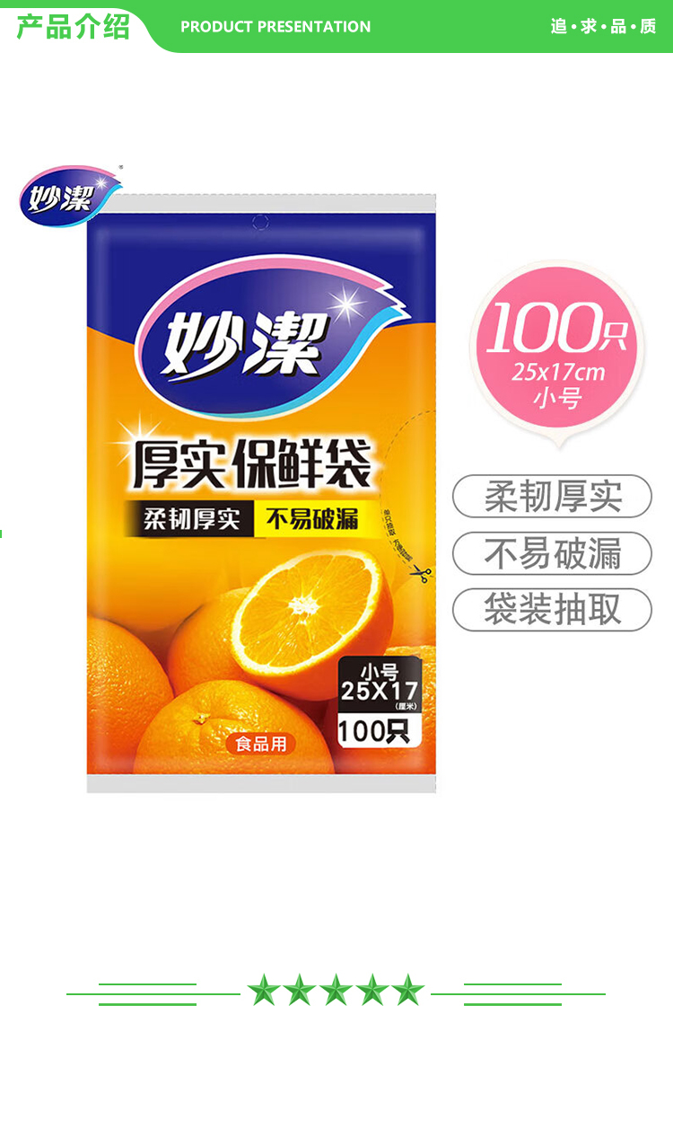 妙洁 小号 保鲜袋 100只 25X17cm 抽取式加厚实塑料食品袋 单位:包 2.jpg