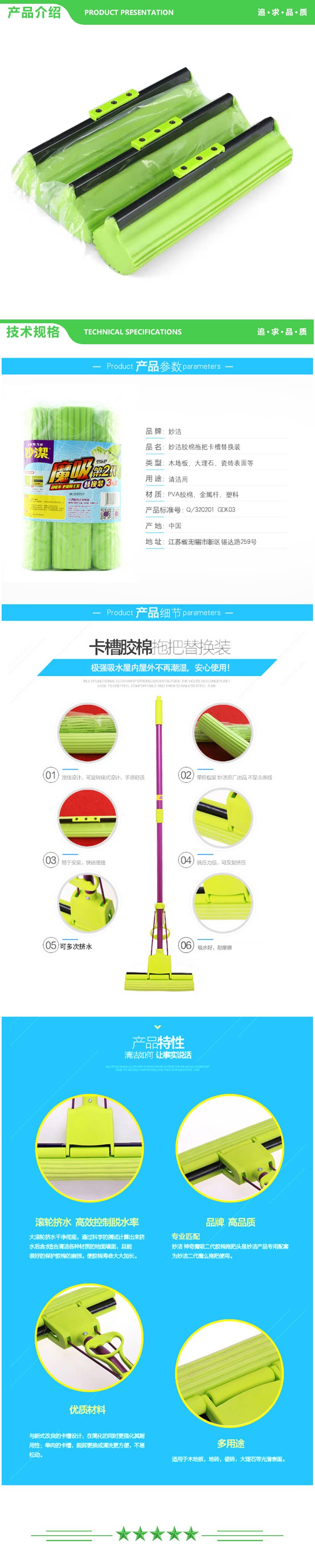 妙洁 胶棉头吸水拖把替换头拖把头3个 卡槽加强型海绵拖把头替换装卫生间 2.jpg