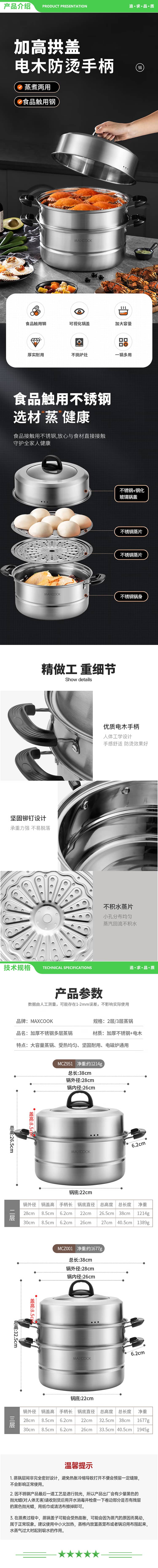 美厨 maxcook MCZ001 三层蒸锅 28cm不锈钢蒸锅汤锅汤蒸锅 燃气电磁炉通用 2.jpg