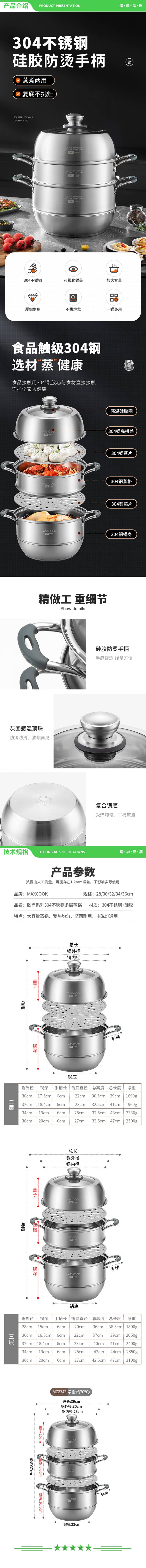 美厨 maxcook MCZ743 蒸锅全304不锈钢30cm三层蒸锅感温复底汤锅 燃气电磁炉通用 2.jpg