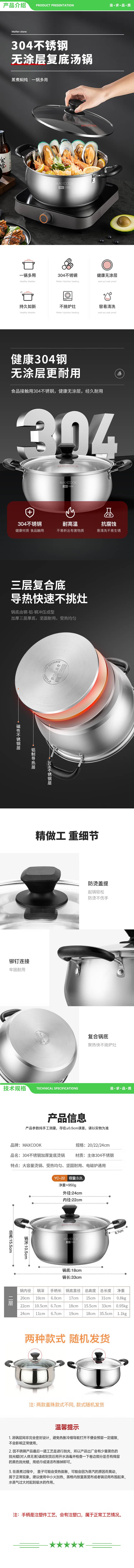 美厨 maxcook YC-22 汤锅 304不锈钢汤锅汤煲22cm 加厚复合底 燃气炉电磁炉通用 2.jpg