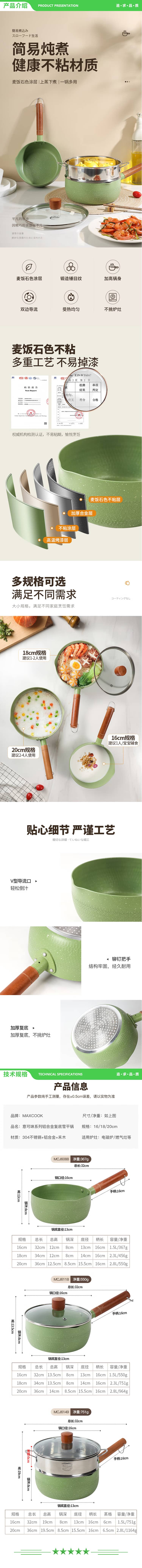 美厨 maxcook MCJ6088 雪平锅 锤纹铝合金不粘奶锅 煮面汤锅宝宝辅食锅 炉灶通用 2.jpg