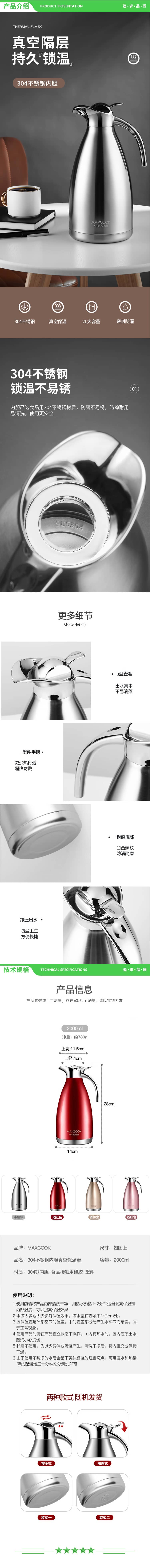 美厨 maxcook MCH151 保温壶 304不锈钢真空热水壶保温瓶暖壶 2.0L 粉红色 2.jpg