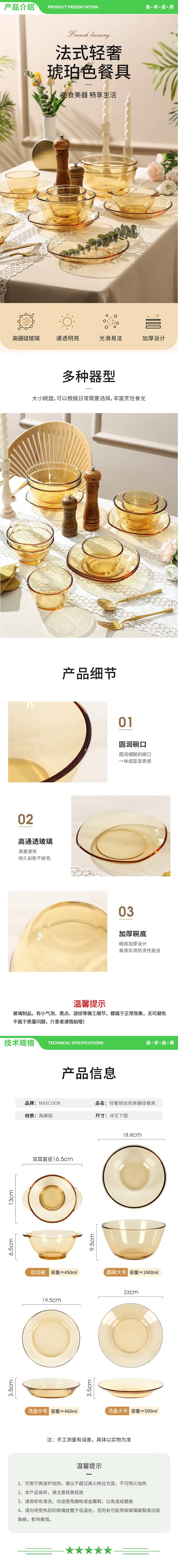 美厨 maxcook MCWA3140 高硼硅玻璃碗 耐热玻璃沙拉水果碗汤碗琥珀色450ml 2只装 2.jpg