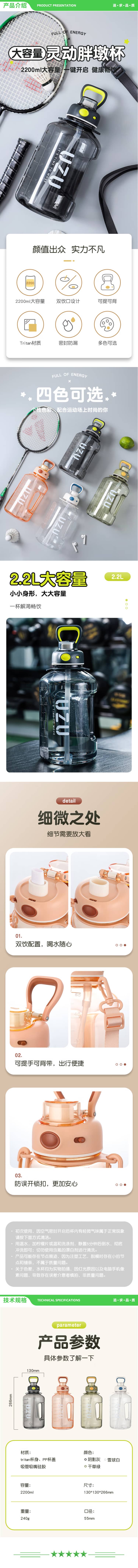 美厨 maxcook MCB2646 超大容量水杯 网红顿顿桶吨杯吨桶杯吸管杯健身水杯2.2L灰 2.jpg