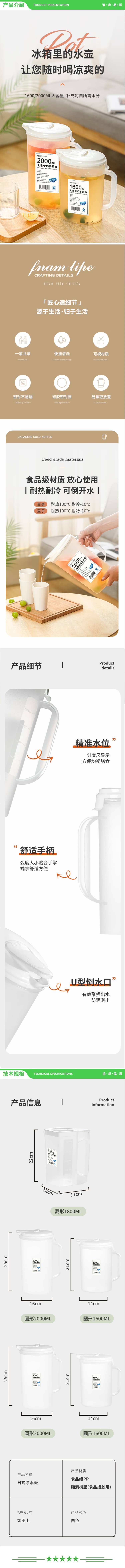 美厨 maxcook MCH0574 冷水壶 冰箱凉水壶凉白开柠檬水大容量塑料饮用水壶2L 2.jpg