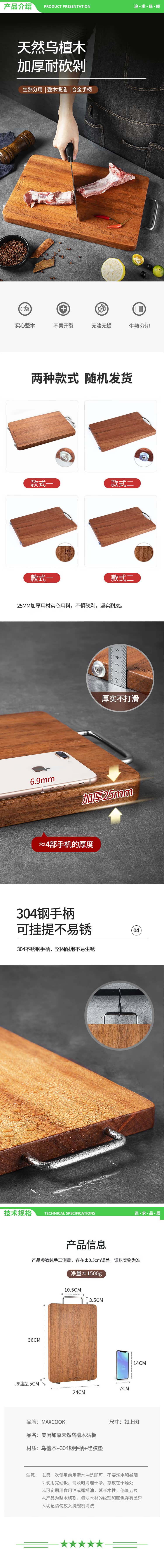 美厨 maxcook MCPJ790 乌檀木砧板 加厚天然整木菜板 实木案板 方形36X24X2.5cm 2.jpg