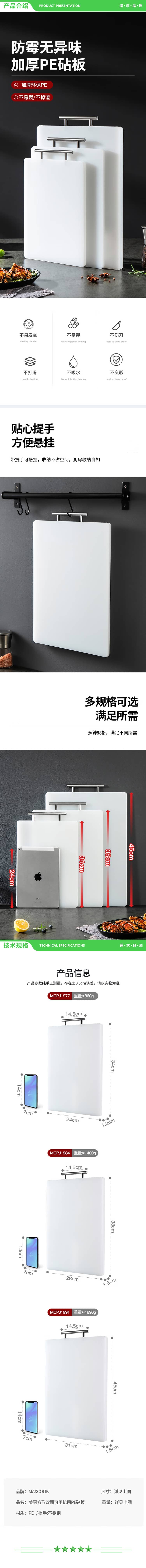 美厨 maxcook MCPJ1977 菜板砧板 抗菌PE塑料砧板 防霉水果砧板辅食案板切菜板 抗菌PE砧板中号34X24X1.2cm 2.jpg