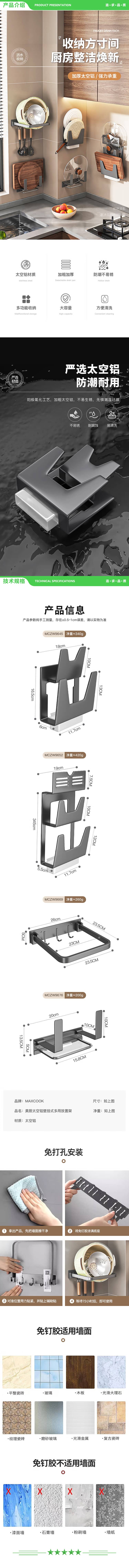 美厨 maxcook MCZW9669 可折叠抹布沥水架铲勺收纳架 家用免打孔 2.jpg