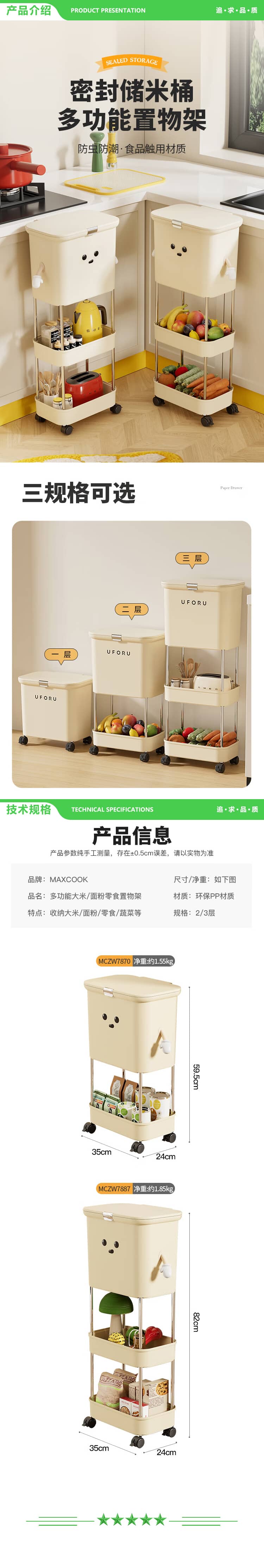美厨 maxcook MCZW7870 落地二层收纳储物架网篮层架推车米桶垃圾桶 2.jpg