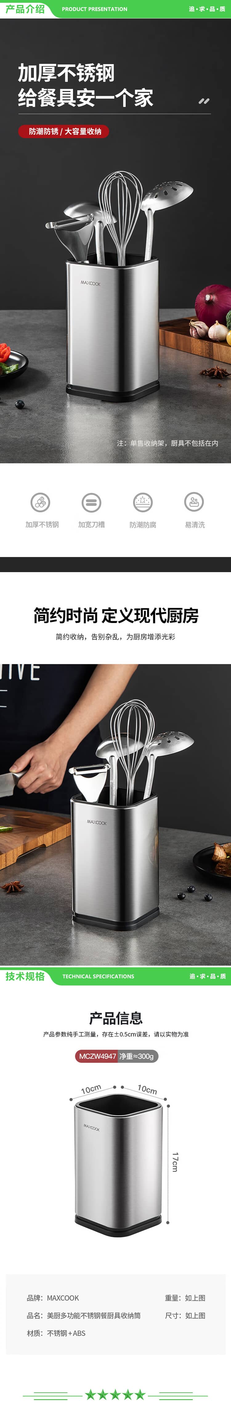 美厨 maxcook MCZW4947 不锈钢筷子筒筷笼架 餐厨具收纳筒沥水置物筷子架 2.jpg
