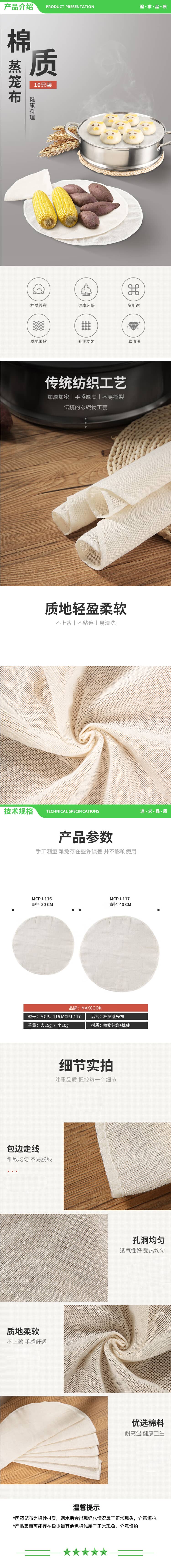 美厨 maxcook MCPJ117 纯棉蒸笼布 蒸馒头布笼屉布 直径40cm 10片装 2.jpg