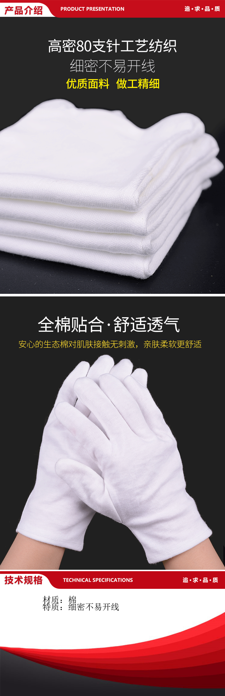 礼仪白手套白色 检阅兵手套 工作业礼仪 劳动防护