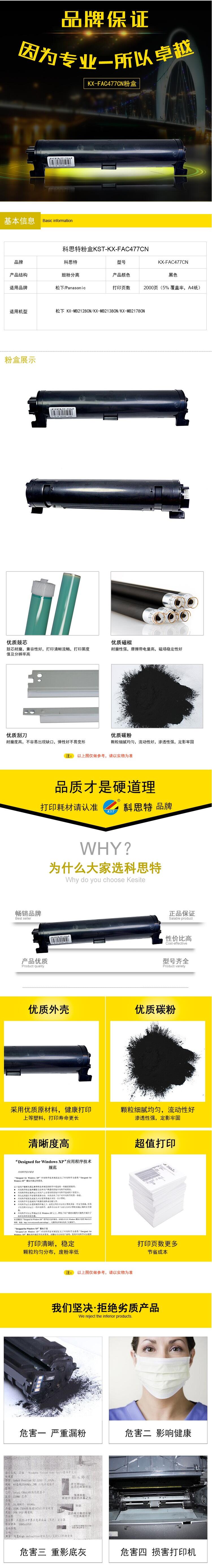 科思特 KX-FAC477CN 粉盒 适用松下 KX-MB2123CN 2128 2133 2120 477粉筒 2000页 专业版