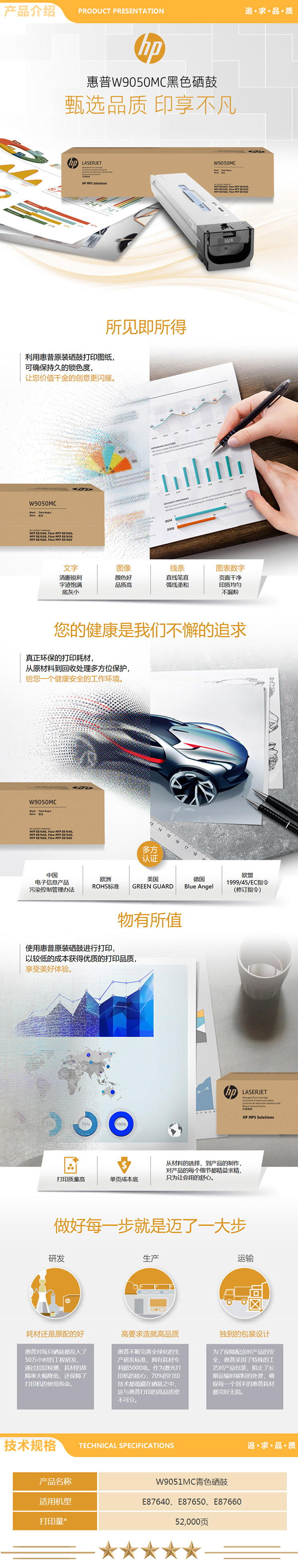 惠普 HP 青色硒鼓 W9051MC(适用于HP E87640z/E87650z/E87660z)