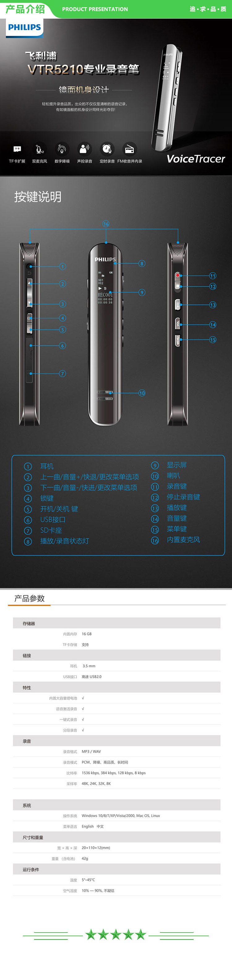 飞利浦 PHILIPS VTR5210 录音笔 16G 会议采访 数字降噪 双麦克风数码锂电  .jpg
