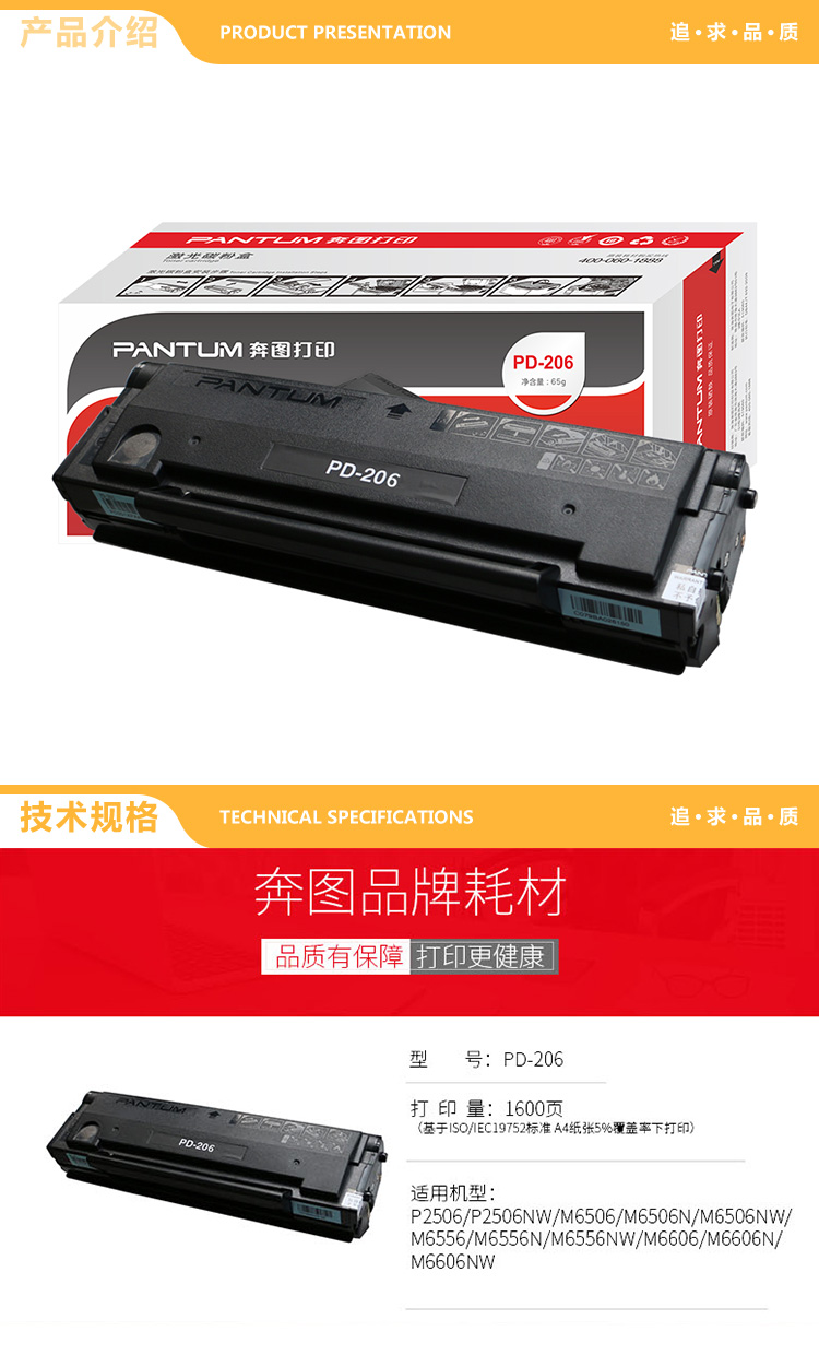 奔图 PANTUM PD-206 黑色碳粉盒(适用于P2506 M6506 M6556 M6606)