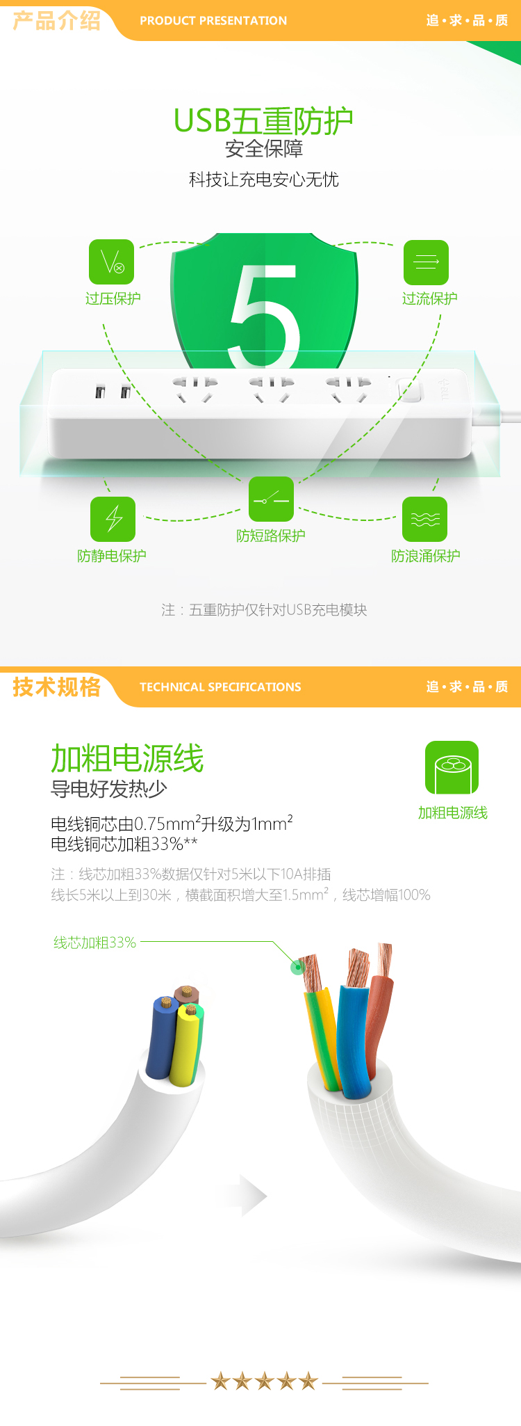 公牛 BULL GNV-UUB126 插座/插排/接线板 全长3米