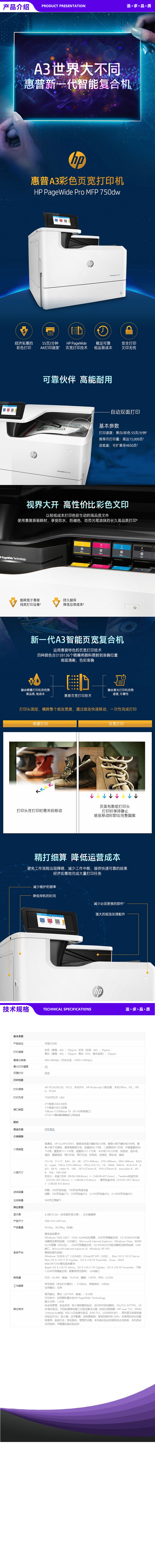 惠普 HP PAGEWIDE PRO 750DN A3彩色 页宽打印机 30页