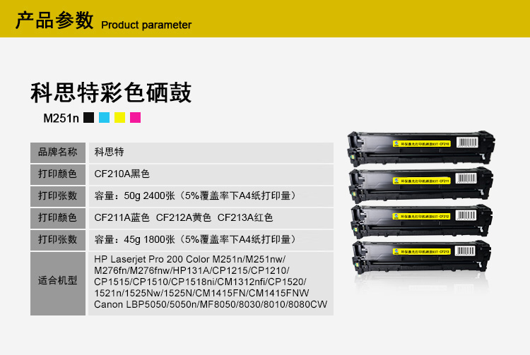 科思特CF213A/CB543A/CE323A/CRG316 硒鼓 适用惠普CP1215 M276fn佳能CRG316 红色 专业版