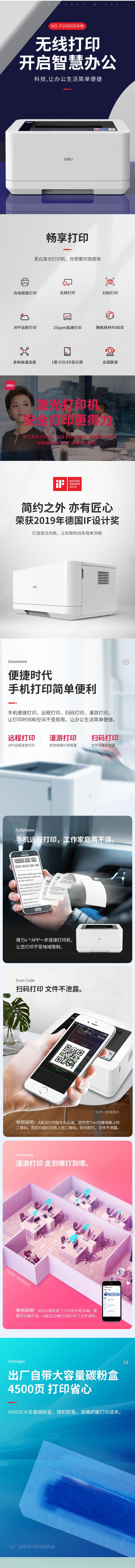 得力 deli P2000DNW A4黑白激光打印机 支持WIFI云打印 25页