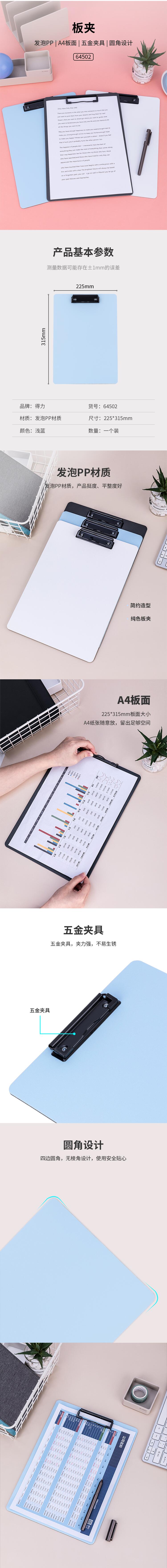 得力 deli 64502 A4书写板夹(灰色)(个)