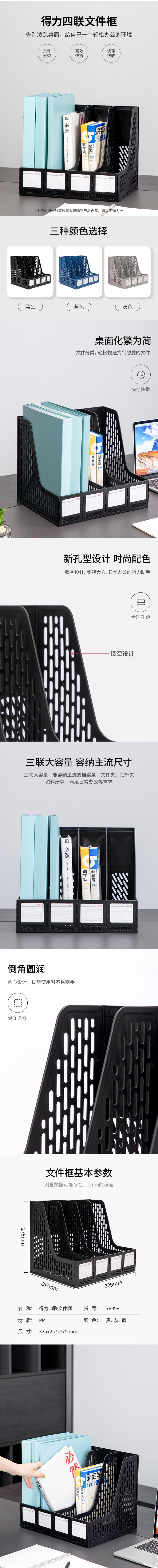 得力 deli 78998 四联桌面文件框(蓝色)(只)