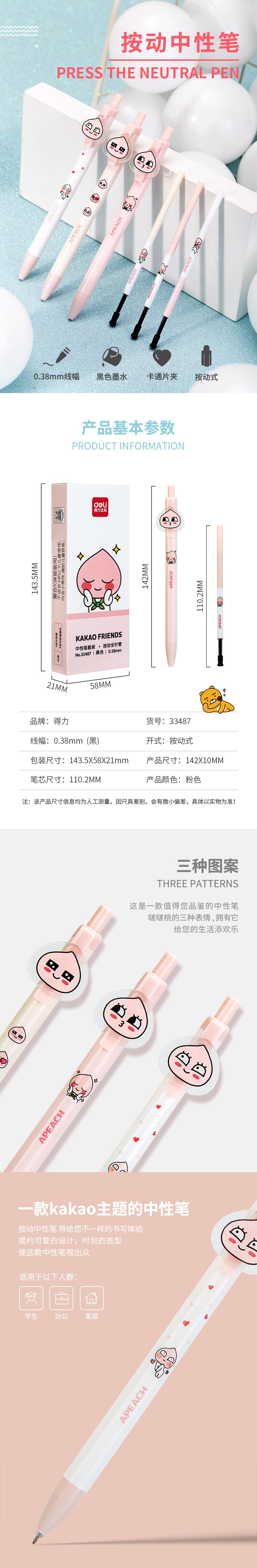 得力 deli 33487 Kakao Friends中性笔套装(黑)(3支笔+9支替芯)