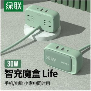 - 绿联 UGREEN 90328 30W智充魔盒 PD快充头插座接线板...