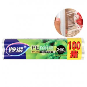 - 妙洁 保鲜膜超值装100米 PE材质30cmX50mX2卷