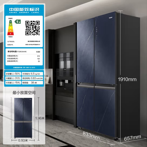 海尔 Haier BCD-501WLHTDD5BYU1 对开门超薄冰箱 京馨 501L风冷无霜变频