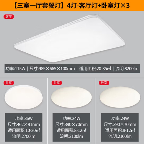 飞利浦 PHILIPS 9290025891 LED简斌恒妍吸顶灯 简约全屋套餐灯具 三室一厅 主灯+卧室+恒妍24 2